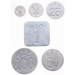 HUDSON'S BAY COMPANY. Eastern Arctic. 5, 10, 25, 50 &100. Gingras-285, 285a, 285b, 285c, 285d. All EF or better. Lot of five (5) tokens.