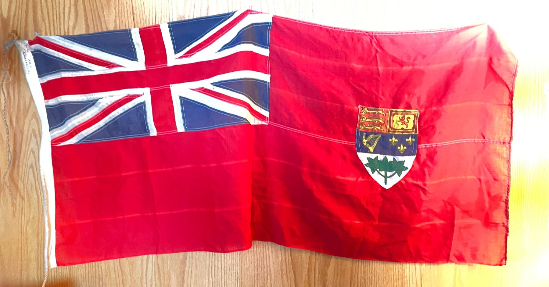 The Canadian Red Ensign flag served as the civil ensign for Canada from 1892 to 1965 and as an informal flag of Canada from the late-19th centruy to 1965. Fabric flag 6 feet. 1921 flag design