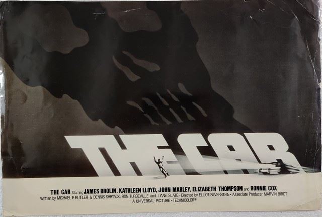 The Car (Universal Pictures, 1977). Window card. Starring: James Brolin and Kathleen Lloyd. There are creases, marks, stains, paper loss and edge wear damage . Fine. (18" X 12").