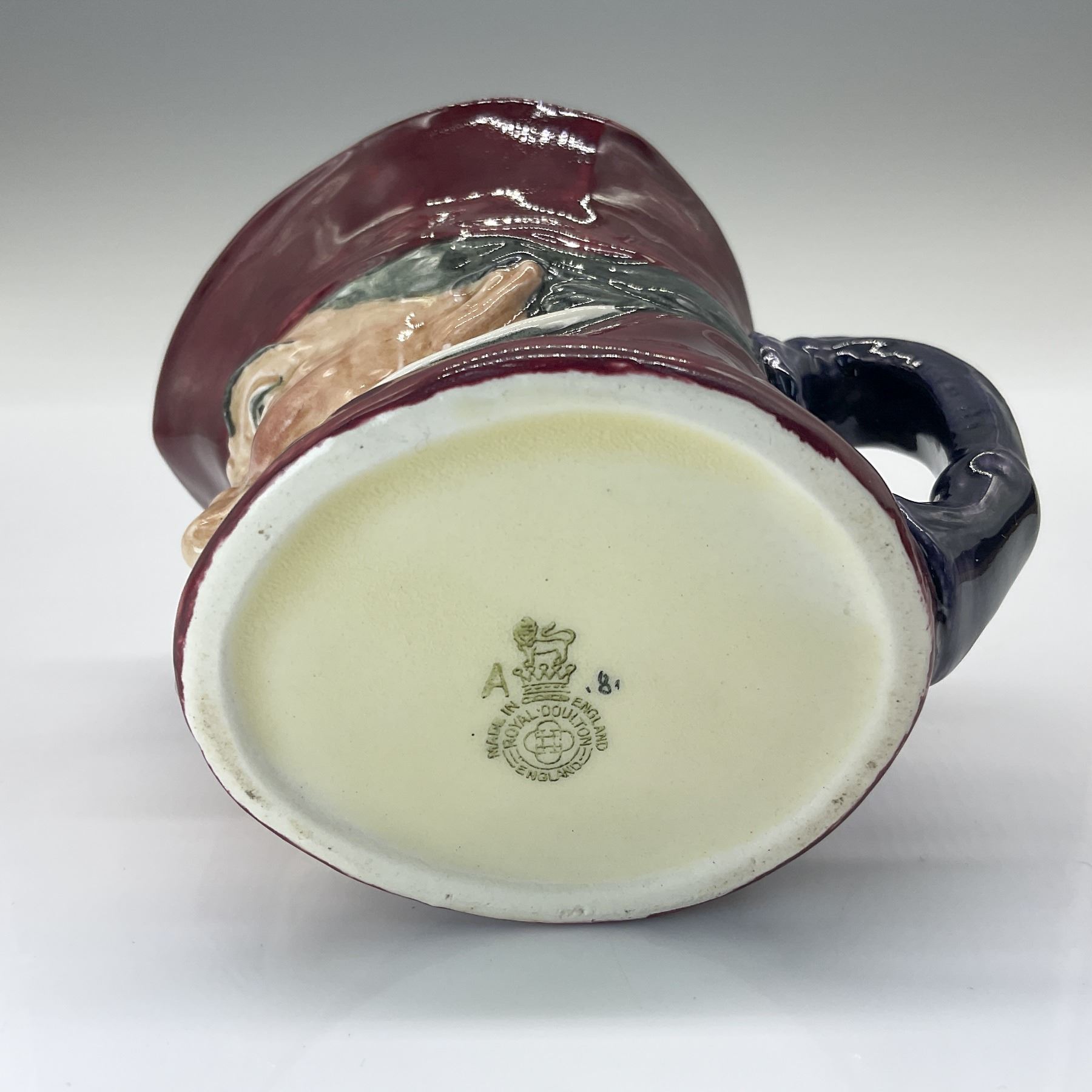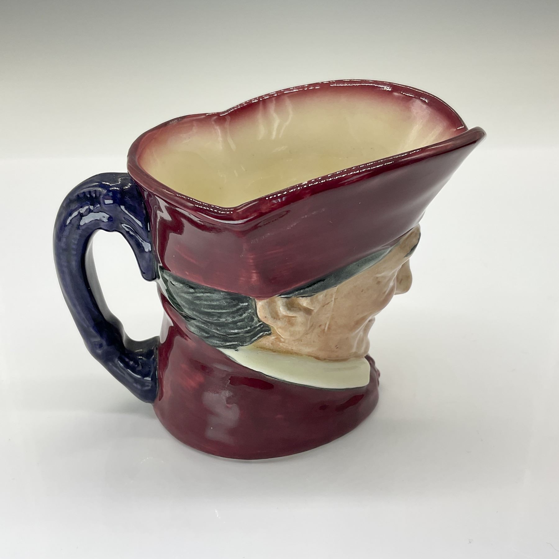 This small hand painted jug features scarlet robe with a purple handle. Royal Doulton backstamp.