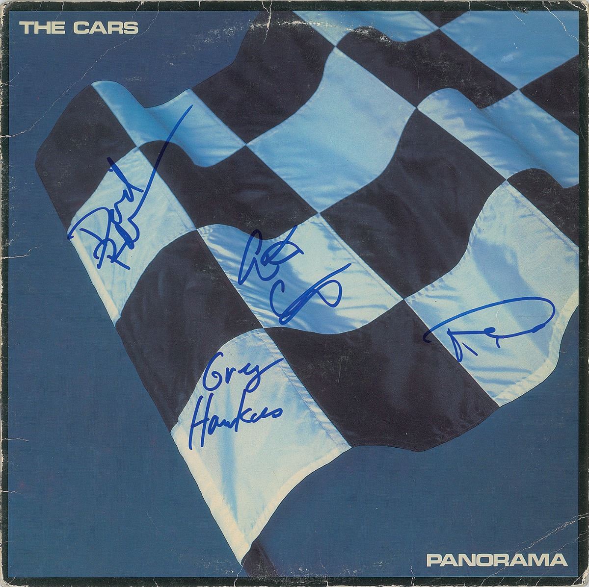 Panorama album signed on the front cover in blue felt tip by Elliot Easton, Ric Ocasek, Greg Hawkes, and David Robinson. In fine condition, with scattered creasing. The record is included.