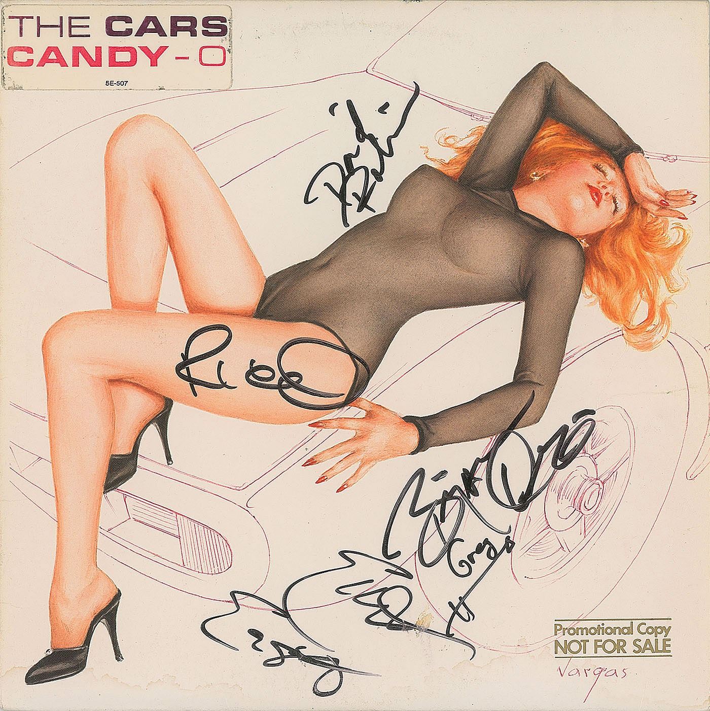 Candy-O promotional album signed on the front cover in black felt tip by Ric Ocasek, Elliot Easton, Greg Hawkes, Benjamin Orr, and David Robinson. In fine condition, with faint dampstaining to the bottom edge. The record is included.