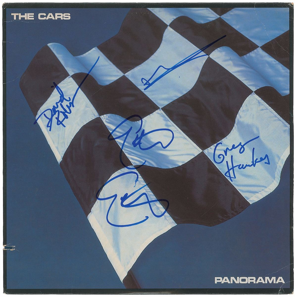 Panorama album signed on the front cover in blue felt tip by David Robinson, Greg Hawkes, Elliot Easton, and Ric Ocasek. Trivial brushing to the Easton signature, creasing to corners and edges, and a discount cut to left edge, otherwise fine condition. The record is included.