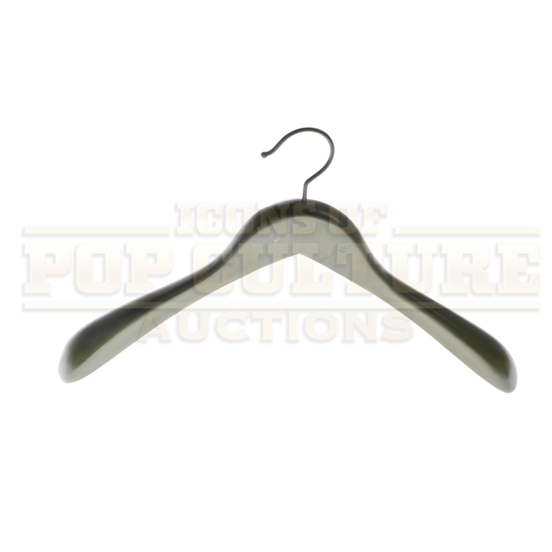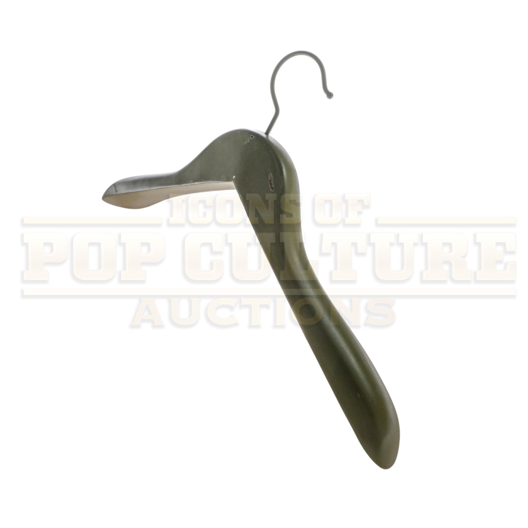 Crafted from sturdy wood and painted a muted green with a glossy finish, this oversized hanger measures approximately 18" x 10.5" x 3" and was designed with the exaggerated, cartoonish proportions that defined the film’s Seussian aesthetic. Hangers of this distinctive style appear during one of the movie’s most memorable comedic moments, when the Cat mischievously hangs Mrs. Kwan in a closet.