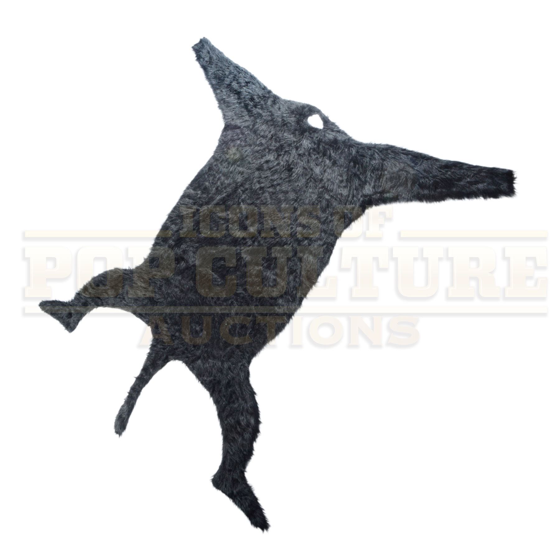 Crafted from dark faux fur and shaped into an exaggerated, cartoonish spread-out feline form, the piece remains instantly recognizable when compared to its on-screen appearance. A rare survivor from the whimsical world of Dr. Seuss filmmaking, this production-made hero rug is both absurd and iconic, perfect for collectors seeking a large, show-stopping display piece from one of the most imaginative sets ever put to film.