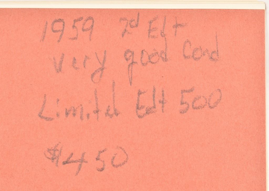 1959 limited second edition 1/500. Published by Antiquarian Press