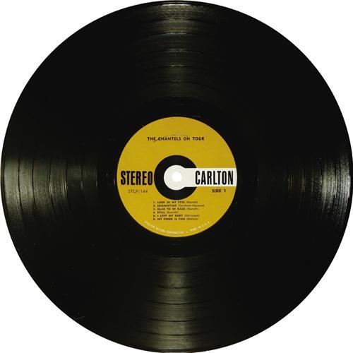 <B>"The Chantels On Tour" LP Carlton 144 Stereo (1961).</B></I> Classic early '60s "Girl Group" hit it big as teenagers in 1958 with "Maybe," but enjoyed an even bigger hit with "Look In My Eyes" in 1961 after switching to the Carlton label. The latter is included here as is "Well, I Told You," another hit from 1961, an answer song to Ray Charles' "Hit The Road Jack." Rare copy in this grade -- only a light crease near the bottom right corner keeps the cover from grading at least NM 8. Condition: EX 7/ MT 9.