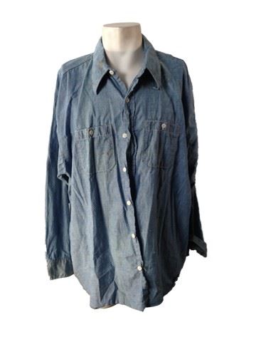Joseph (Geza Rohrig) screen worn, hero, blue heavily distressed work shirt.