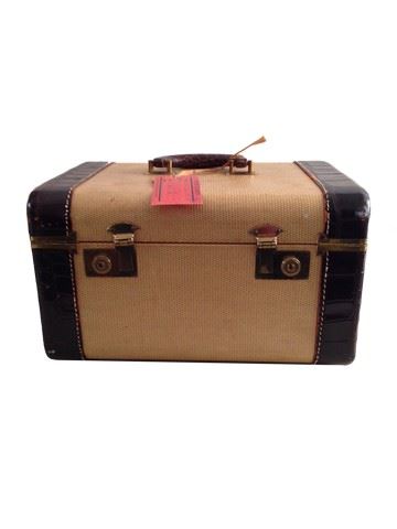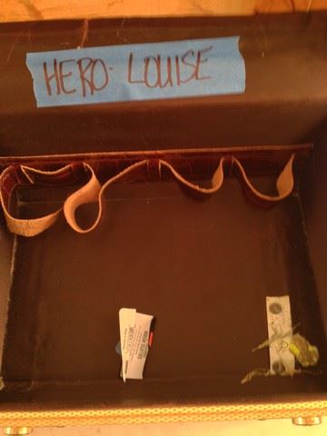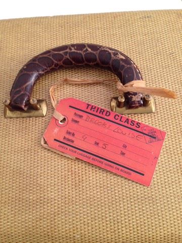 Louise Brooks (Haley Lu Richardson) screen used, hero, tan and yellow very worn luggage, the inside is very ripped and tattered, third class ticket attached to the handle.(14x9)