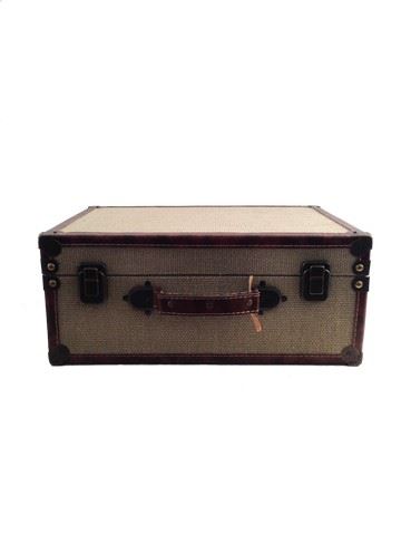 Louise Brooks (Haley Lu Richardson) screen used, hero, tan and brown trim luggage, third class ticket from 'Penn Station" on the handle.(15x7x11)