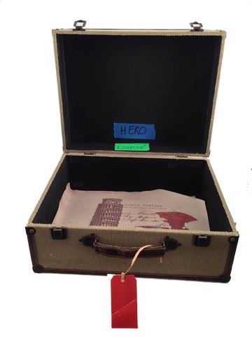 Louise Brooks (Haley Lu Richardson) screen used, hero, tan and brown trim luggage, third class ticket from 'Penn Station" on the handle, the luggage has a mat inside that is from Italy.(17x13x7)