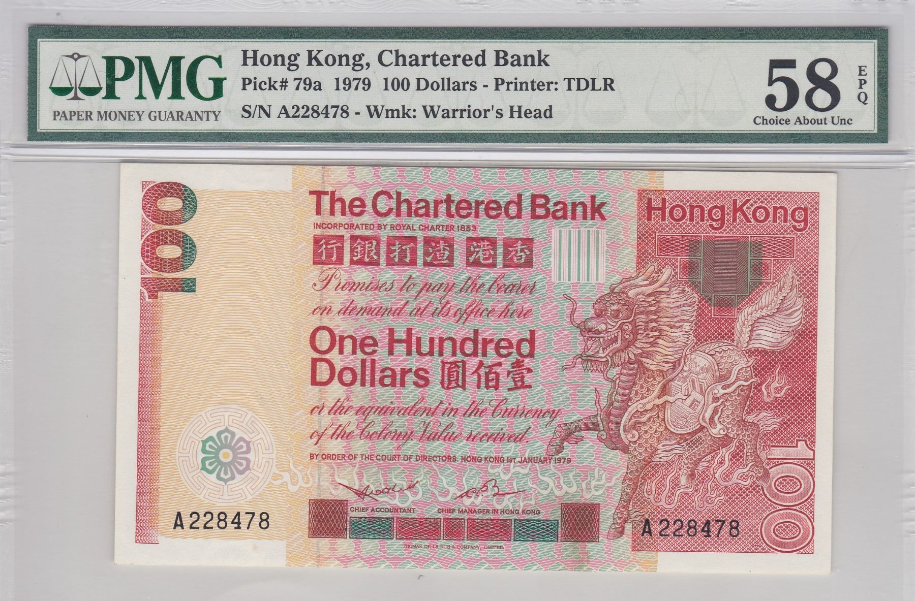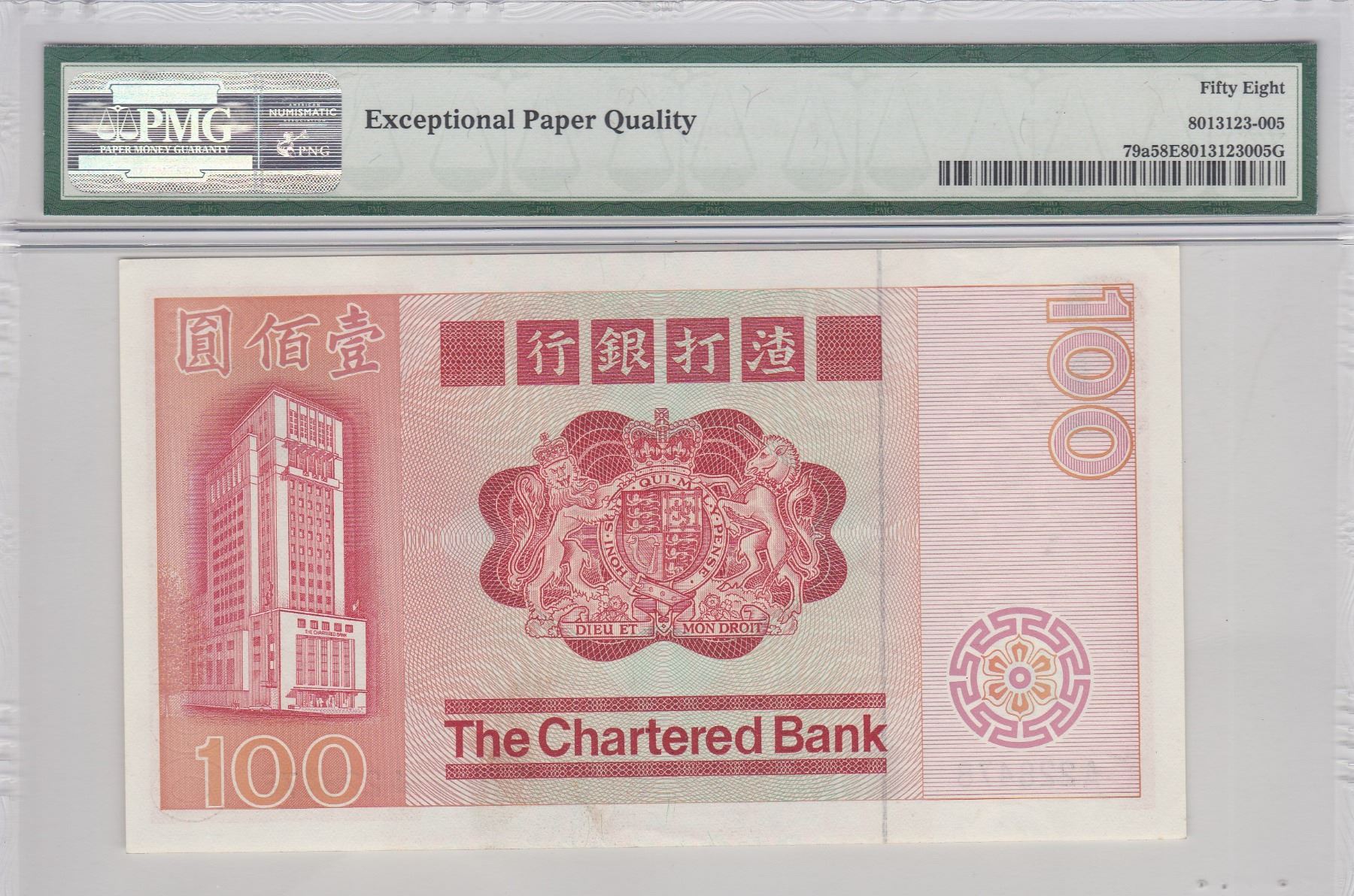 1979,渣打銀行, $100, 編號: A228478. PMG 58EPQ. A 冠,