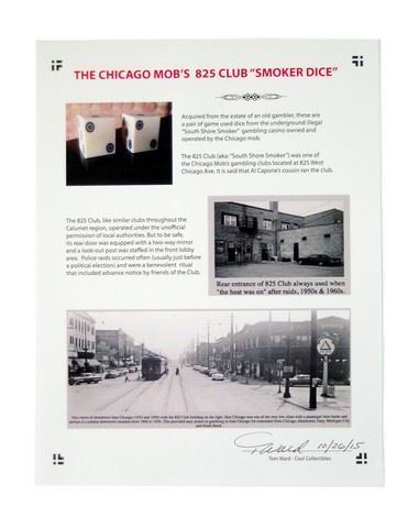 The Chicago Mob's 825 Club "Smoker Dice" from a Chicago Mob's illegally run casino. Includes COA.