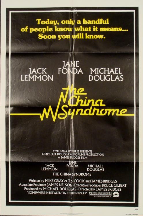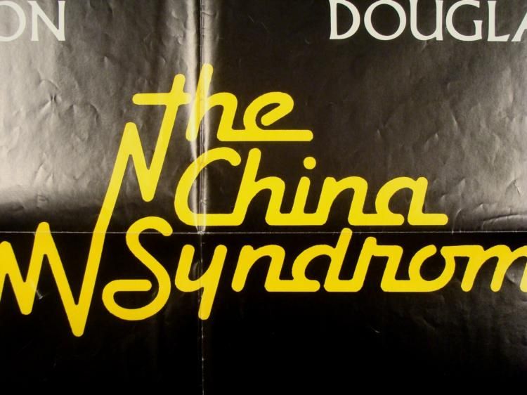 This is an original poster from the 1979 movie The China Syndrome. America's fears of a nuclear power plant meltdown were well portrayed in this classic movie, and this poster reads like radioactive lettering.Size: 27 x 41 inches (one sheet) Condition: Very good; light wear at the folds, surface wrinkles, and tear through on top