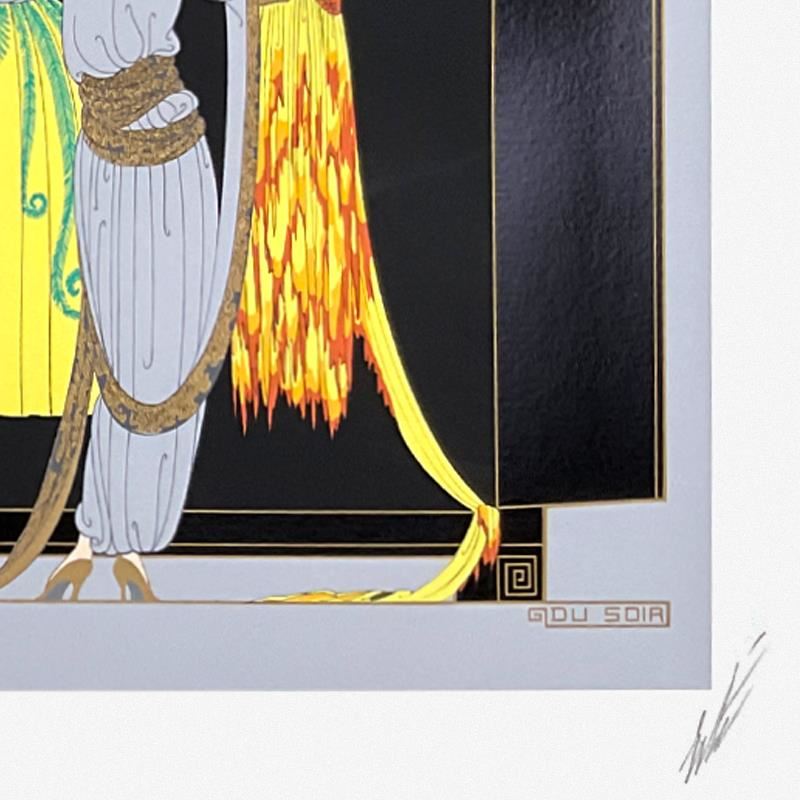 The Choice is a limited edition serigraph on paper by Erte (1892-1990), AP numbered 43/60 and hand signed by the artist. Includes Letter of Authenticity. Measures approx. 20.5 x 37.5 (border), 15 x 32.5 (image).