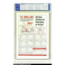 The Cisco Kid #38 File Copy (Dell, 1958) CGC NM 9.4 Off-white pages. The "Robin Hood of the West" actually had his own title for 41 issues. Out of the whole run the coolest issues are the last five which happen to have photo covers. This bright red book languished in the publisher's files for decades therefor avoiding any contact that would cause any wear. To date, this is the only CGC-graded copy of this issue. Overstreet 2003 NM 9.4 value = $125. Important notice: Heritage usually auctions material at the rate of 200-250 lots per hour. On some occasions eBay Live bid software or the Internet may not be able to keep up with the pace of the auction. We recommend placing a realistic absentee bid now as insurance to avoid disappointment. Occasionally the auctioneer may eliminate or reject an eBay Live bid, and the auctioneer may also reopen a lot after the close of the eBay live bidding (usually because we missed an audience bid), and may reject your bid even if it shows you as the winning bidder. By bidding via eBay Live, you agree that Heritage may award the lot to another bidder at its sole discretion under the circumstances described above or any other reasonable circumstances. Also please note that all Heritage lots purchased through eBay Live carry a 20% Buyer's Premium. Please make sure you read the Terms and Conditions before you bid.