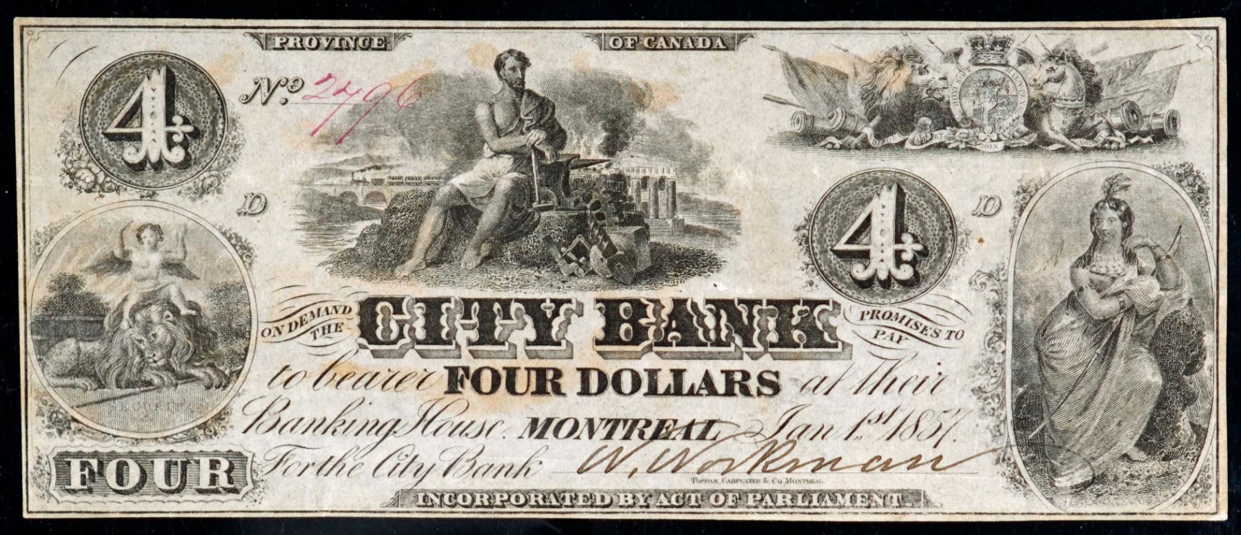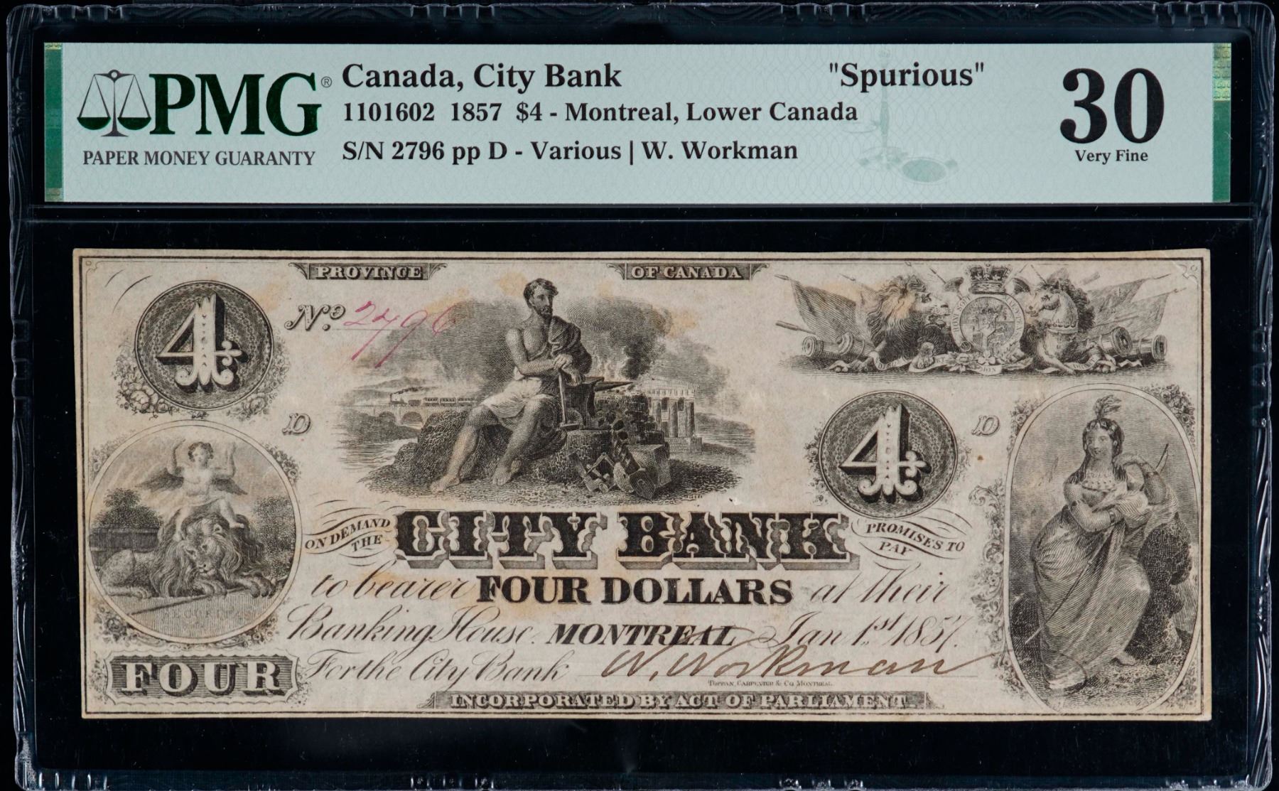 The City Bank of Canada; 1857 $4 #2796 CH-110-16-02, PMG Choice Very Fine-30.
