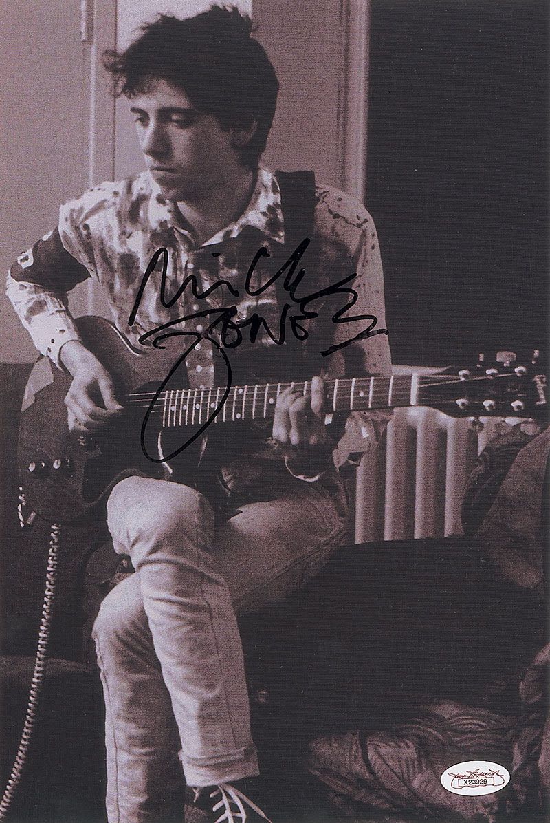 Glossy 8 x 12 photo of Jones picking at his guitar, signed in black felt tip. In fine condition, with a James Spence authentication label affixed to lower corner. Accompanied by a letter of authenticity from James Spence.