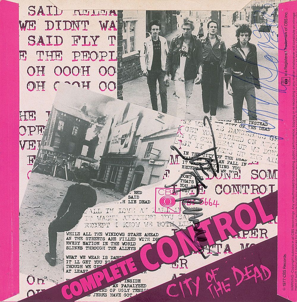 CBS Records 45 rpm record of ‘Complete Control/City of the Dead,’ signed on one side of the sleeve in felt tip and ballpoint by Joe Strummer and Mick Jones, and on the opposing side by Paul Simonon and Topper Headon. In fine condition. The record is included. Accompanied by a certificate of authenticity from Roger Epperson/REAL.