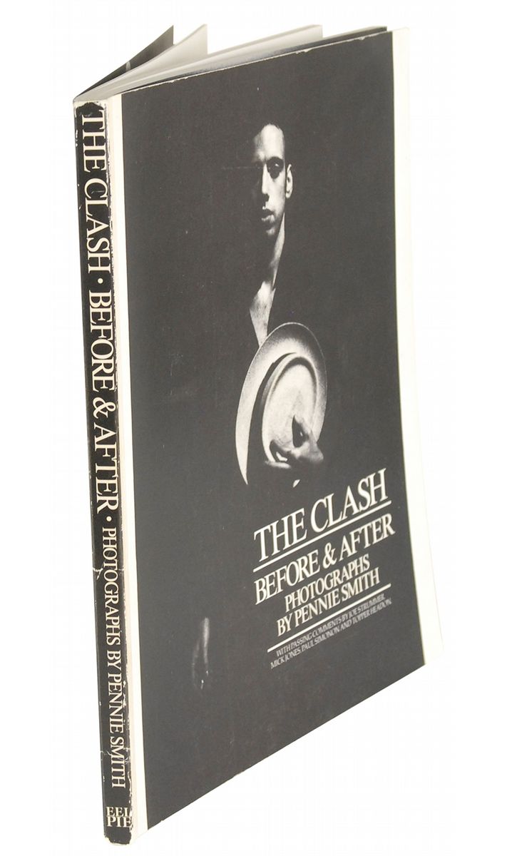 Signed book: The Clash: Before & After. London: Eel Pie, 1980. Softcover, 8.75 x 11. Signed on the inside front cover and first free end page in blue ballpoint by Joe Strummer, Mick Jones, and Terry Chimes. In fine condition, with some mild handling wear. Accompanied by a full letter of authenticity from James Spence.