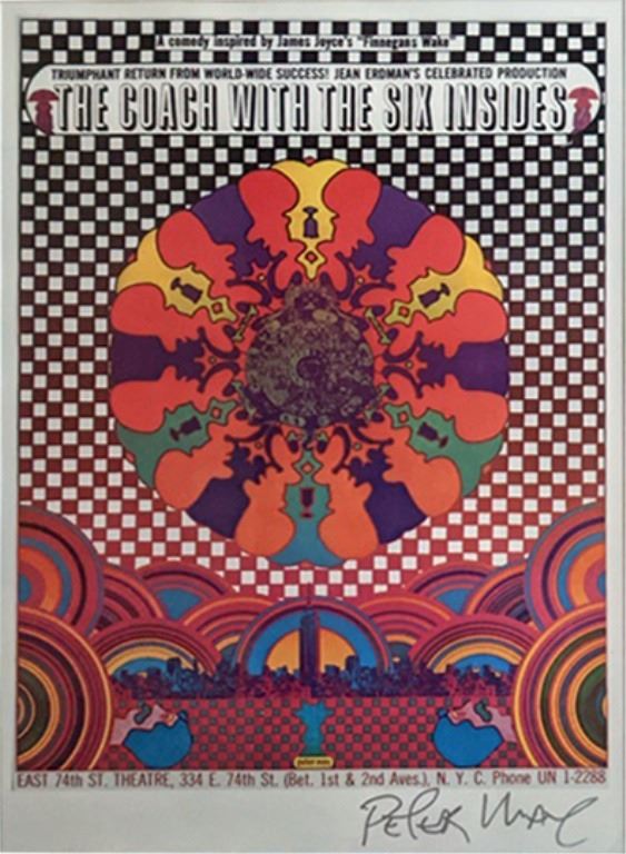The Coach with the Six Insides signed vintage pop art print autographed by Peter Max. Custom framed. 22x18 inches. PD71