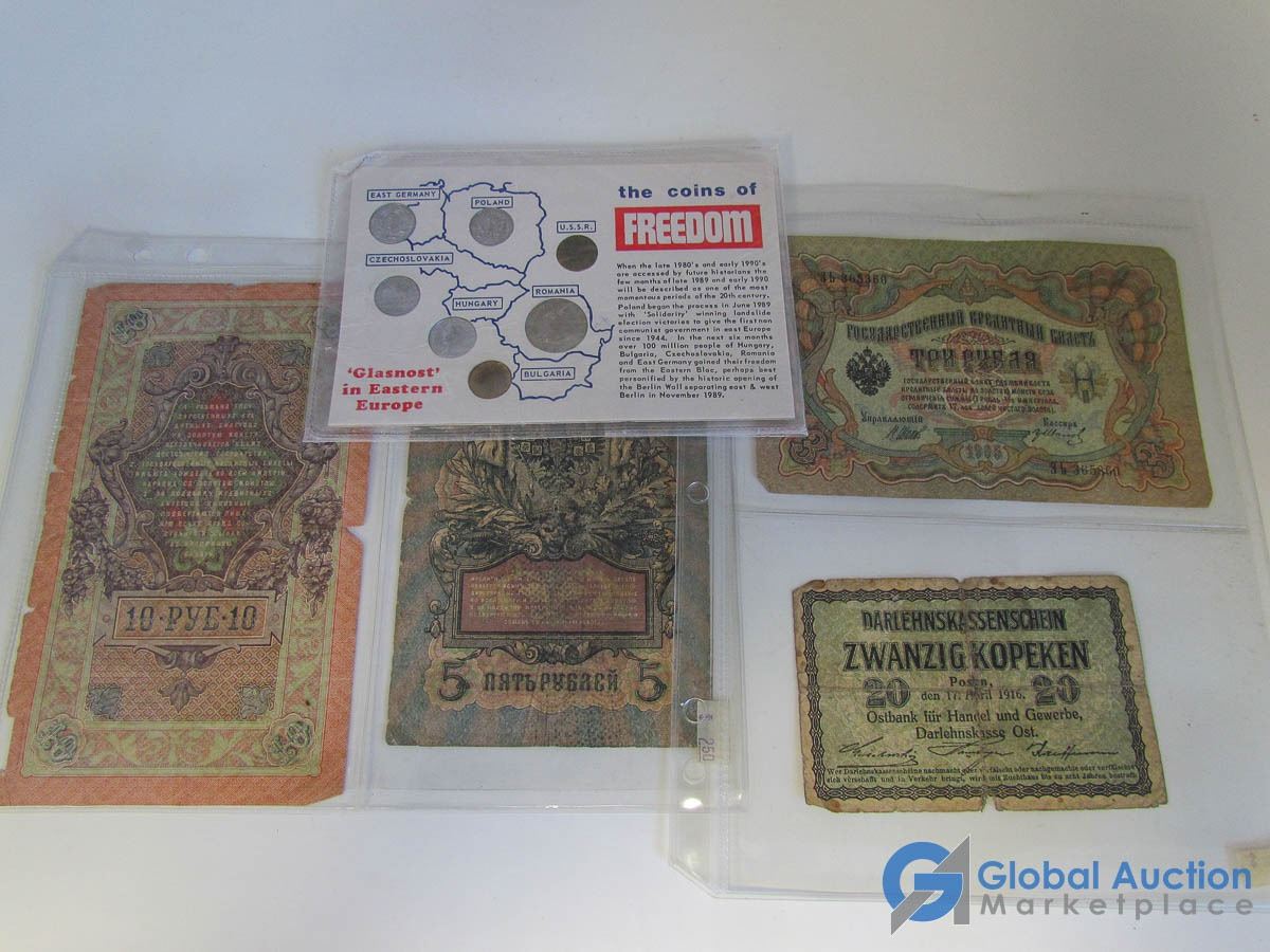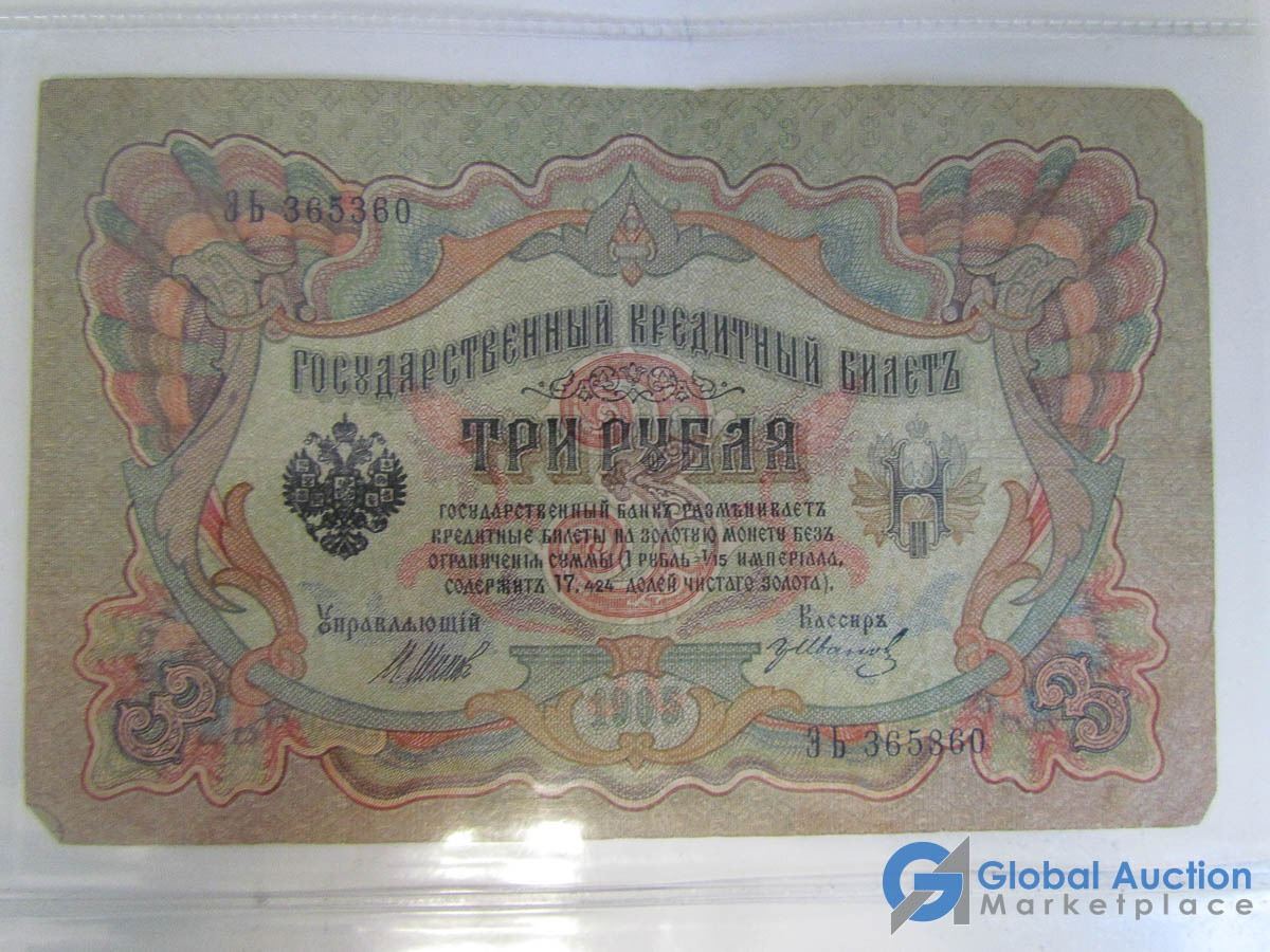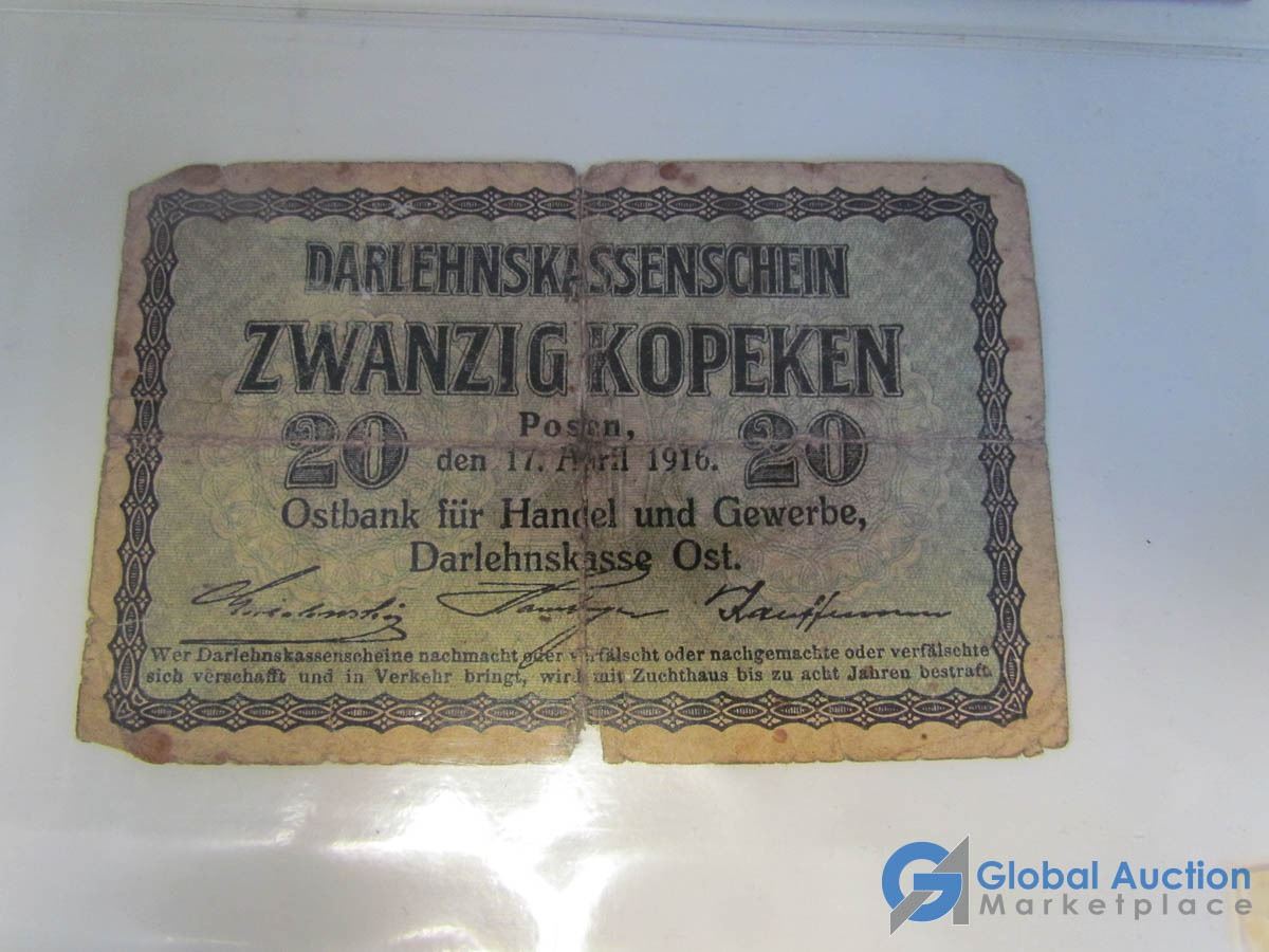 1916 DARLEHNSKASSENSCHEIN 20 KOPEKEN, 1905 & 1909 Russian Banknotes