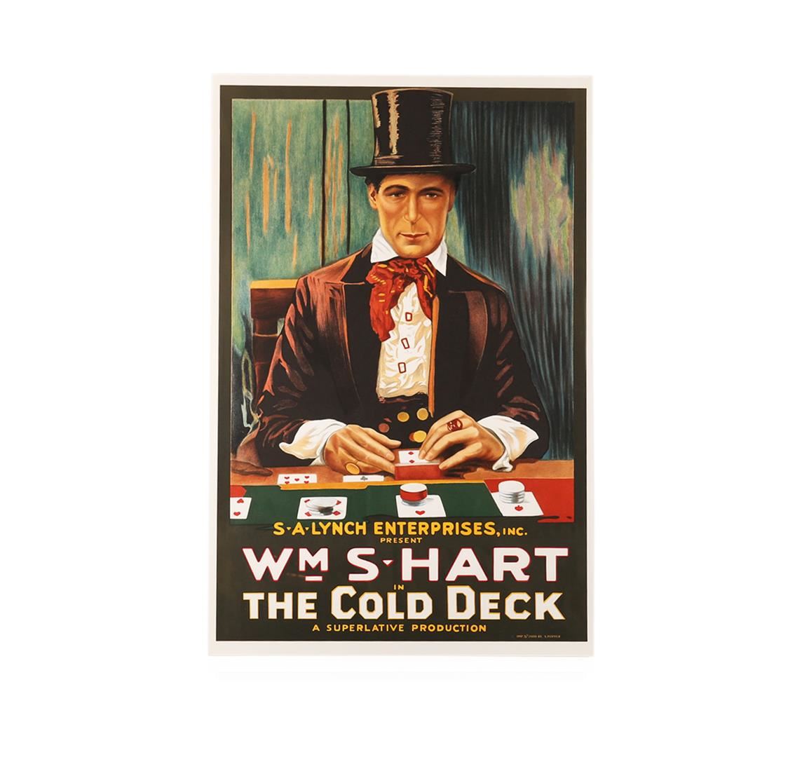 Lithograph hand pulled on Rives 100% cotton paper. The vintage one-sheet was originally created in 1917 for The Cold Deck. This one-sheet is one of the S2 Art Group's recreated posters in affiliation with the American Film Institute's "100 American Classic Movie Posters". This is a lithograph recreated on a 19th century vintage hand-pulled press. It comes with a certificate of authenticity. This poster is created as a genuine fine art lithograph on the same antique press that created the vintage posters over 100 years ago. The impressions are made, one for each color, by creating hand drawn plates, which is then hand-pulled one color at a time through the vintage press. Size: 27" x 41"