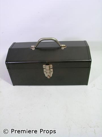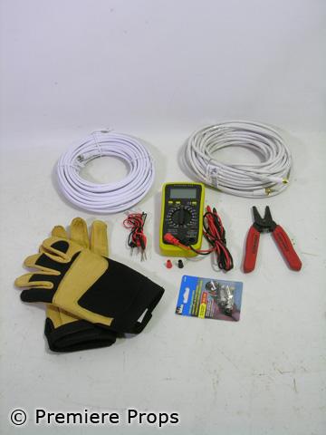 The Collector - As seen in the new hit thriller, The Collector, this is a screen used black with blood metal electricians toolbox kit with tan and black gloves. This case features two bundles of white coaxial cable, yellow and black voltmeter, red and black wire cutters, red and black extra voltmeter cables, and pack of four coaxial cable f-connectors. (CLR2066)