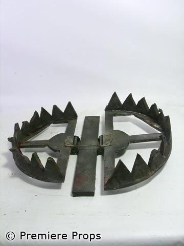 The Collector - Direct from the set of the horror thriller, The Collector, this is The Man's (Juan Fernández) hero, screen used, bloody and dirty, black with silver circular foam spikes and wood closed, spring hinged bear trap! This excellent prop is approx. 17.5" x 21.5". A fantastic addition to your movie memorabilia collection! (CLR2008)