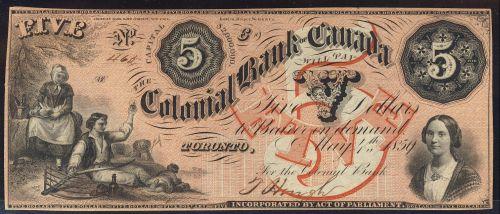 The Colonial Bank 1859 $5 CH130-10-04-10 AU+, a nice and clean note.