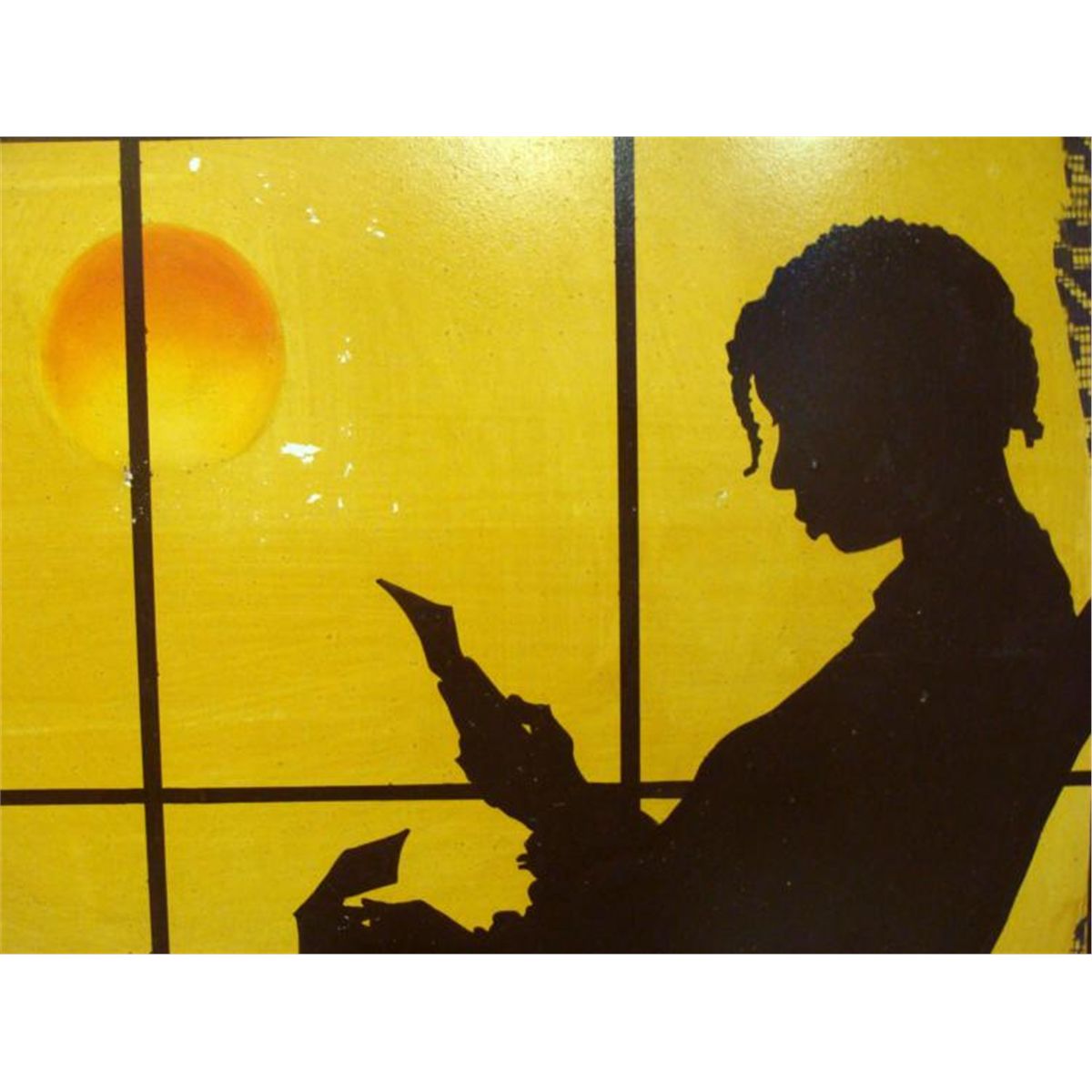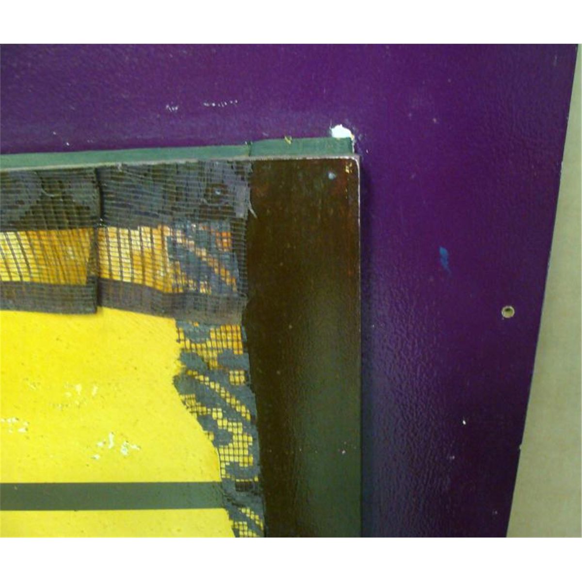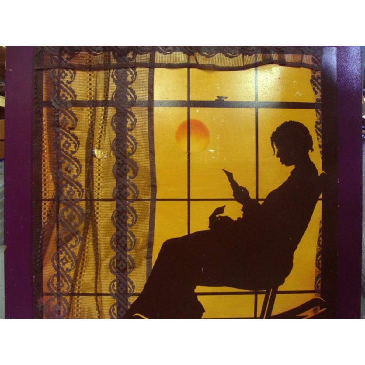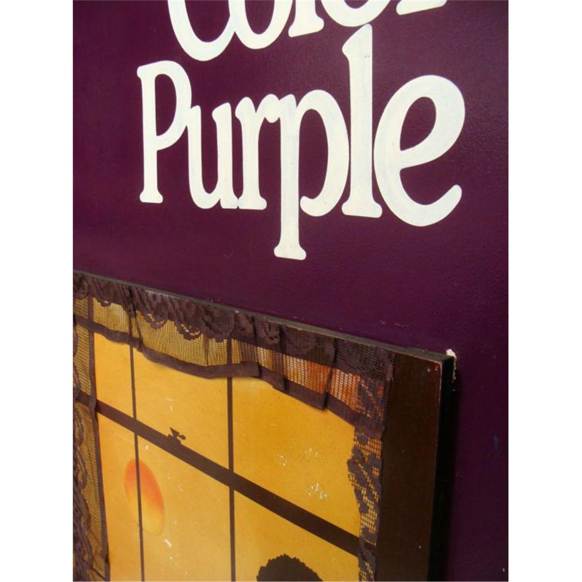 This sign was made during the original production of the motion picture The Color Purple. * It was displayed at the production studio, and also at the premier. The sign is all wood, and hand-painted, with the famous logo, and image. The size itself really lets it stand out, at 48 x 71 inches. It stands out even more with the addition of another separate panel on the main panel, where the image is. The silhouetted figure on the rocker appears in dark purple, with a deep yellow background. Actual purple lace frames the scene, adding a touch of depth and realism. This panel measures 40 x 40 inches. * The sign is in very good condition overall. There are 10 small holes around the near the edges where it was affixed to a wall. There is some paint wear, mostly on the yellow surface, and one spot of lace wear. These are common features on a promotional item, and they don't take away from the wonderful impression this sign makes. This is a unique piece of movie history. Of course, The Color Purple was more than just a movie. It is a great American story, and like this sign it will be cherished for generations to come.*** This is large and heavy sign. Please contact us for a shipping quote, or to schedule a pick-up in our suburban Chicago warehouse. *