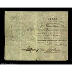 The Colorado and Red River Land Company Oct. 19, 1836A fascinating early document that represents one share in this land company, which settled two sections of land in Texas, one near the Red River and the current border with Oklahoma, and another between the Rio Colorado and the Rio Guadalupe in central Texas. Fine+ overall, but with a couple of small holes where the acidity from the ink has eaten away small portions of the paper at one of the signatures. A rare and important document that should garner exciting bidder action. Important notice: We expect to be auctioning lots at the rate of 200-250 per hour. Sometimes eBay Premier live bid software cannot keep up with that pace, so we strongly recommend that you place a realistic proxy bid now as insurance to avoid disappointment. Also please note that all Heritage/CAA lots purchased through eBay Premier carry a 20% Buyer's Premium. Please make sure you read the Terms and Conditions.