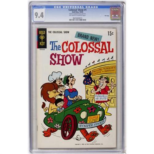 <B>The Colossal Show #1 File Copy (Gold Key, 1969) CGC NM 9.4 Off-white pages.</B></I> One-shot TV comic set in ancient Rome. CGC notes, "From the Random House Archives." Overstreet 2007 NM- 9.2 value = $70. CGC census 10/07: 9 in 9.4, 6 higher.<BR><BR><b>Shipping:</b> Comics - Slabbed (certified) (<a target="_blank" href="http://www.heritageauctions.com/common/shipping.php">view shipping information</a>)