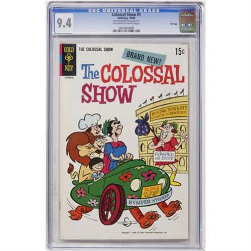 <B>The Colossal Show #1 File Copy (Gold Key, 1969) CGC NM 9.4 Off-white to white pages.</B></I> One-shot TV comic set in ancient Rome. CGC notes, "From the Random House Archives." Overstreet 2008 NM- 9.2 value = $70. CGC census 4/08: 9 in 9.4, 6 higher.<BR><BR><b>Shipping:</b> Comics - Slabbed (certified) (<a target="_blank" href="http://www.heritageauctions.com/common/shipping.php">view shipping information</a>)