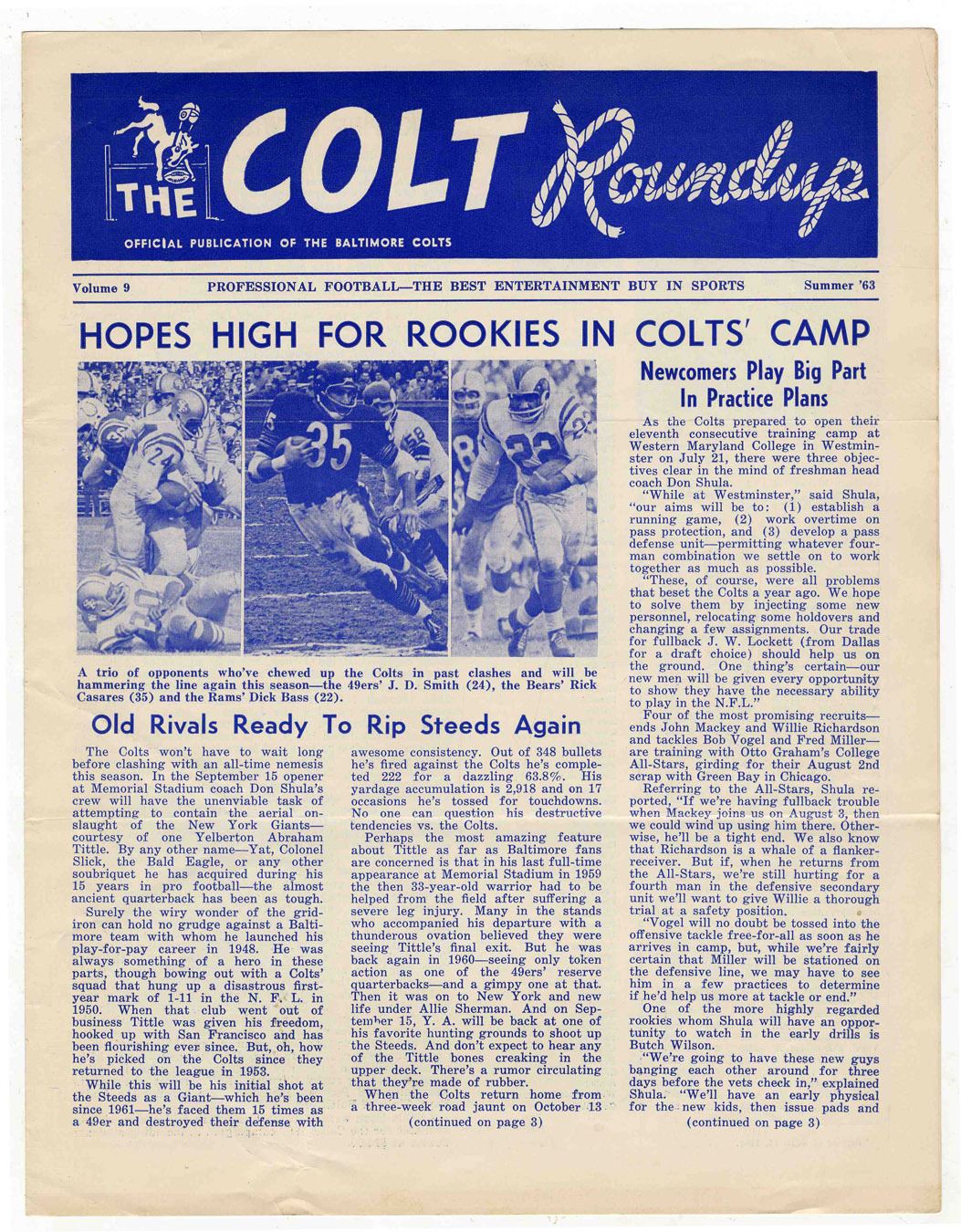 'The Colt Roundup'' Official Colts Publication -- Summer 1963 -- 4pp. -- 8'' x 10.25'' -- Very Good