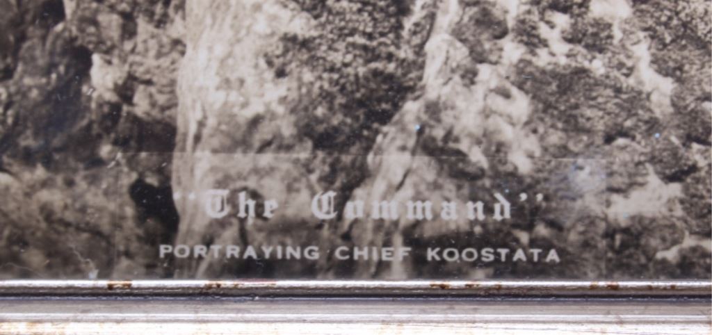 This is an original Antique Photograph that is marked; "The Command" then signed by Polson, Montana photographer, Herman Schnitzmeyer. The piece shows Kutenai Native American Indian Chief Koostata in Dayton, Montana circa 1910-1920. The rare photograph is framed and shows a good condition. Frame measures 7”x11”