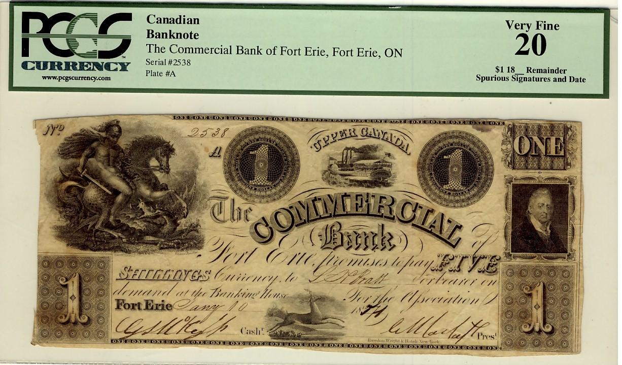 The Commercial Bank of Fort Erie 1837 $1 2538 CH-160-10-02 PCGS VF20