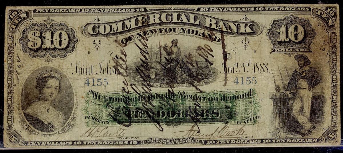 The Commercial Bank of Newfoundland 1888 $10 #4155 CH-185-18-08 Fine. Rare