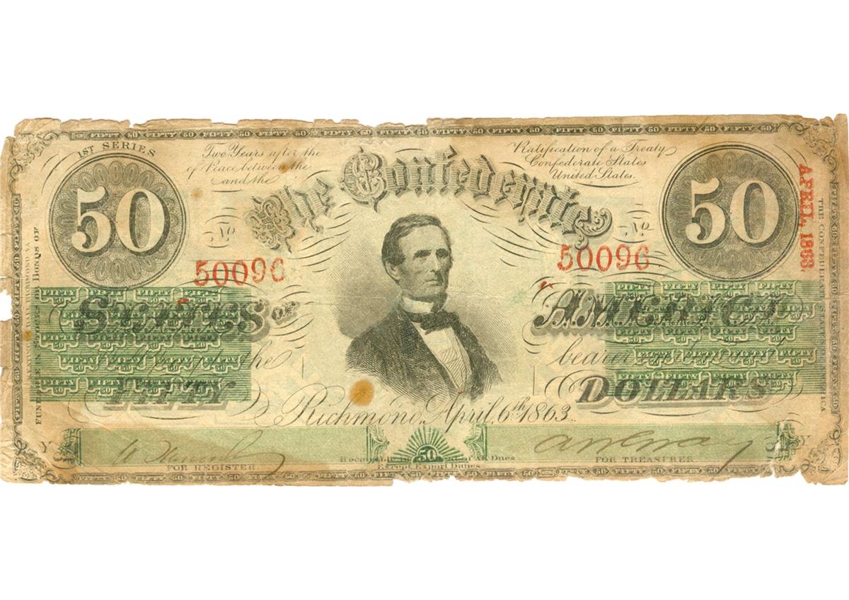 The Confederate States of America Richmond, Virginia $50 Note. April 6, 1863.