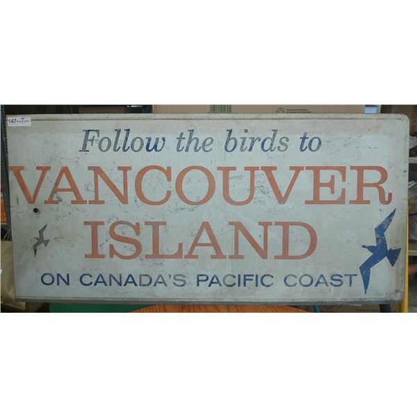 Antique Metal Sign "Follow The Birds To Vancouver Island" Other Side is Sweet Caporal Cigarette Sign