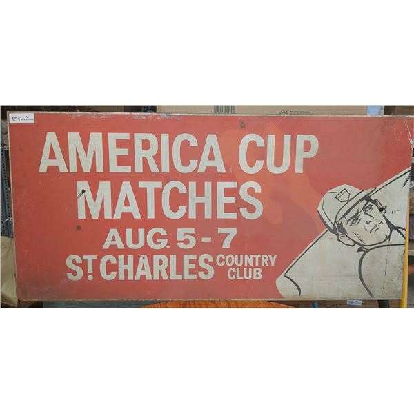 Antique Metal Sign America's Cup Challenges 44" Long x 21" Wide