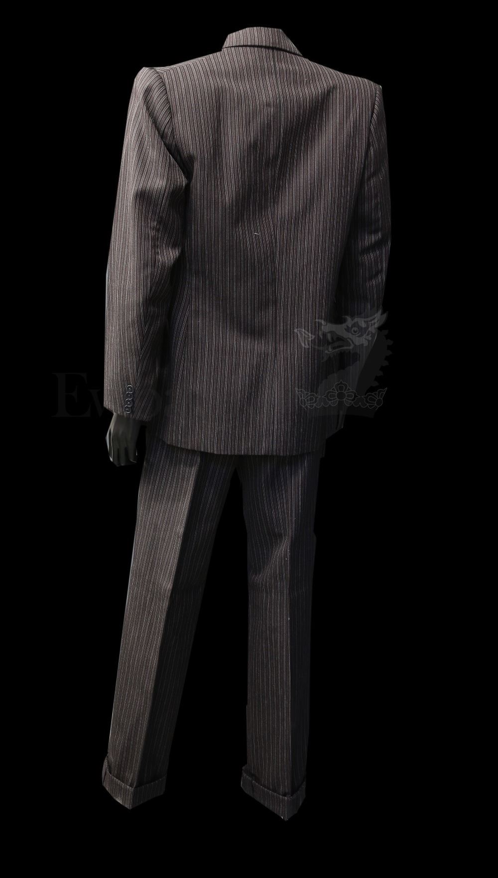 † The Cotton Club (1984) A three piece pinstripe suit, with costumier tags inside each piece and a card costumier hang tag. Together with an Appointment with Death (1988) black silk shawl jacket with red print, made for Jenny Seagrove as 'Sarah King' but not seen in the final edit, retains costumier hang tags. Please note that VAT is payable on top of the hammer price at 20% in addition to standard buyers premium inc. VAT for this lot.