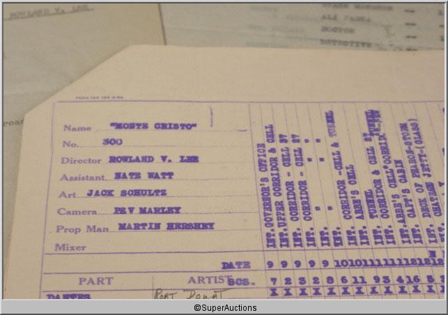 From the Max Factor Files / "The Count of Monte Cristo" / Released September 7, 1023 / Reliance Pictures, Inc. - RKO Pathe Studios / Starring: Robert Donat, Elissa Landi, Louis Calhern, Sidney Blackmer, Raymond Walburn, O.P. Heggie and William Farnum / File contains various documents pertaining to the making of this film such as; Shooting Schedules, Letters, Wigs to Order, Twentieth Century Pictures, Inc. Call Sheets and more