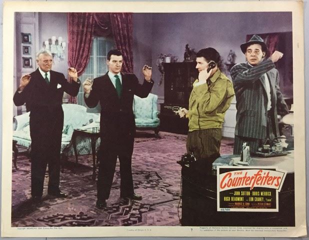 The Counterfeiters (Twentieth Century Fox, 1948). Lobby Card. This is a rare movie theater lobby card. Starring: Thomas Meighan. There are marks, tape and minor edge wear. Very Fine. (11" X 14").
