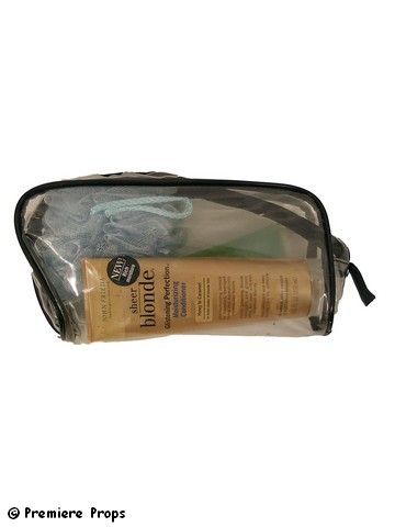 What is a horror film without a shower scene, especially if a beautiful girl in in it? Such is the case in 2006's "The Covenant". These are that beautiful girl in the shower, Sarah (Laura Ramsey, "The Ruins" 2008). These are the hero screen used shower accessories: Clear Vinyl Toiletry Bag (9” x 6” / black trim / zipper top), Light Blue Scrubber (4.5” diameter / plastic netting with rope tie), Shampoo and Conditioner Bottles (8” tall and 7” tall / "Sheer Blonde" in gold color bottle / generic green shampoo with label removed / squeeze bottles), White Hand Towel (20" x 35" / terry cloth). COA included.
