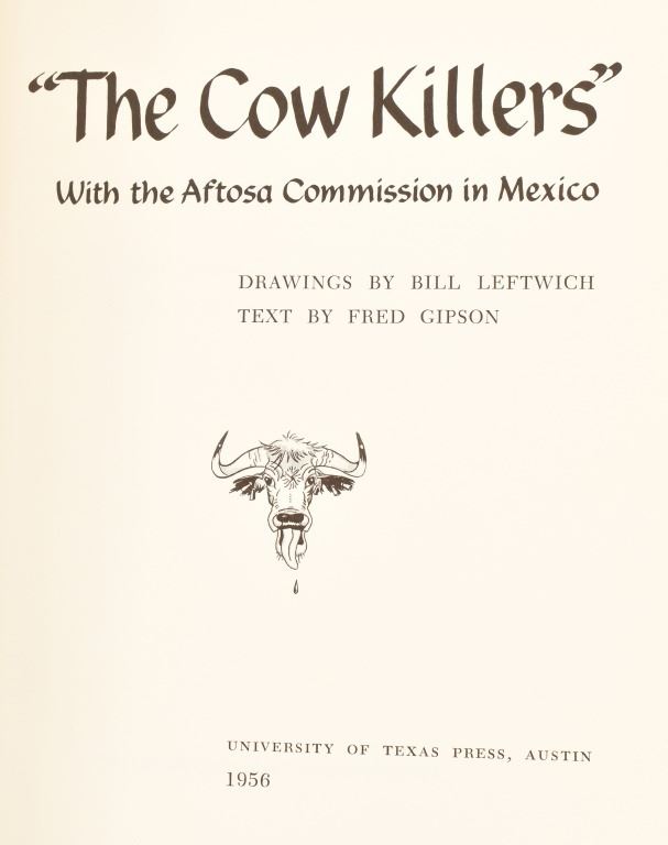 With the Aftosa Commission in New Mexico. Drawings by Bill Leftwhich. Text by Fred Gipson. Signed by the Illustrator. Published by The University of Texas 1956