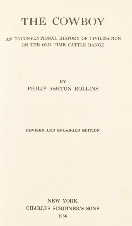 An Unconventional History of Civilization on The Old-Time Cattle Range. Revised edition 1936. Published by New York Charles Scribner's Sons 1936.