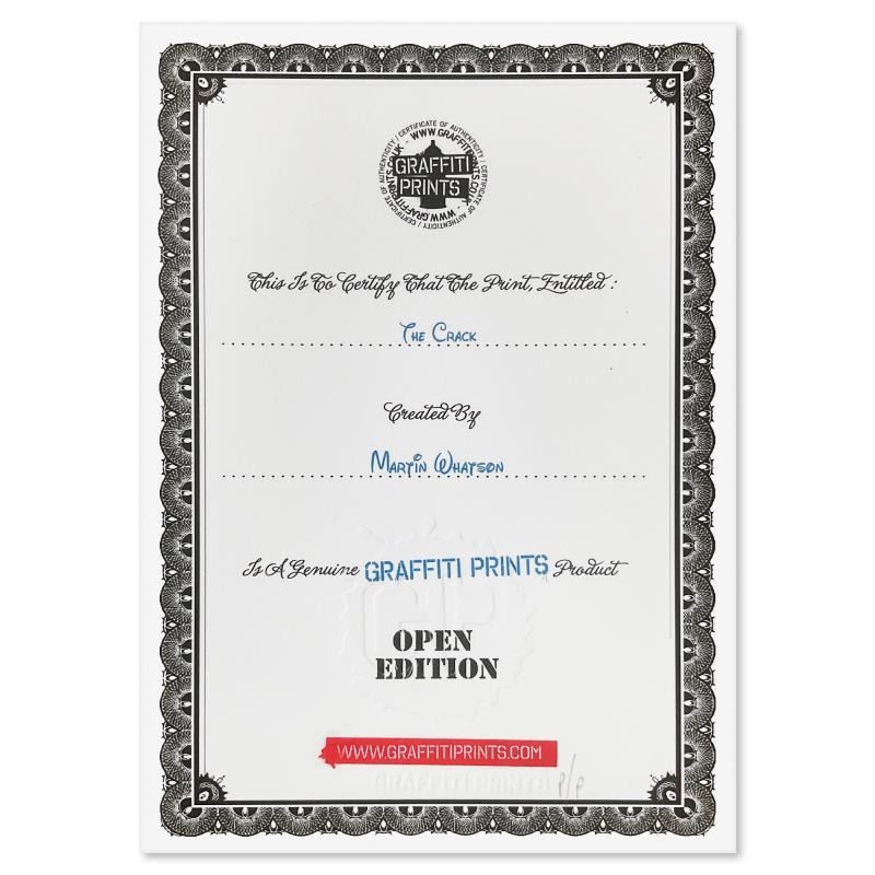 "The Crack" is a silkscreen on paper by Martin Whatson bearing the artist's embossed initials. This piece comes custom framed. The Certificate of Authenticity is notated PP. Measures approx. 16" x 25.5" (frame), 10" x 19.5" (image). This item requires special handling and may have a longer than usual turnaround.