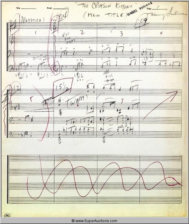 The Crimson Kimono Main Title Musical Score / Harry Sukman / c. 1953