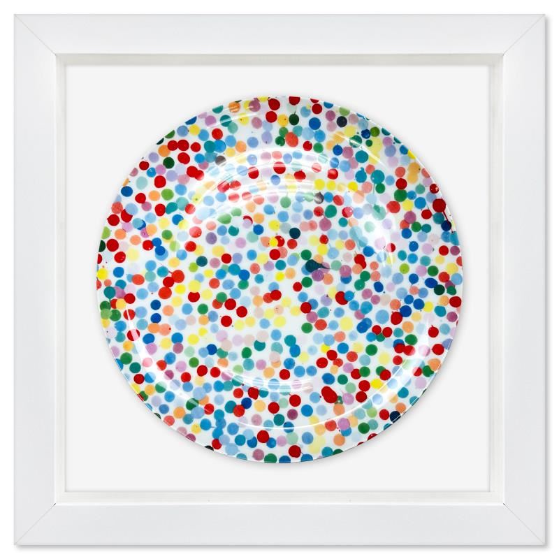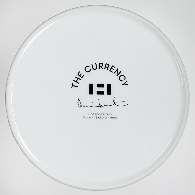 "The Currency" is a plate by Damien Hirst bearing the plate signature of the artist inverso. This plate is custom framed and floated on linen. Includes Letter of Authenticity. Measures approx. 15.5" x 15.5" (frame), 10.5" (plate diameter).